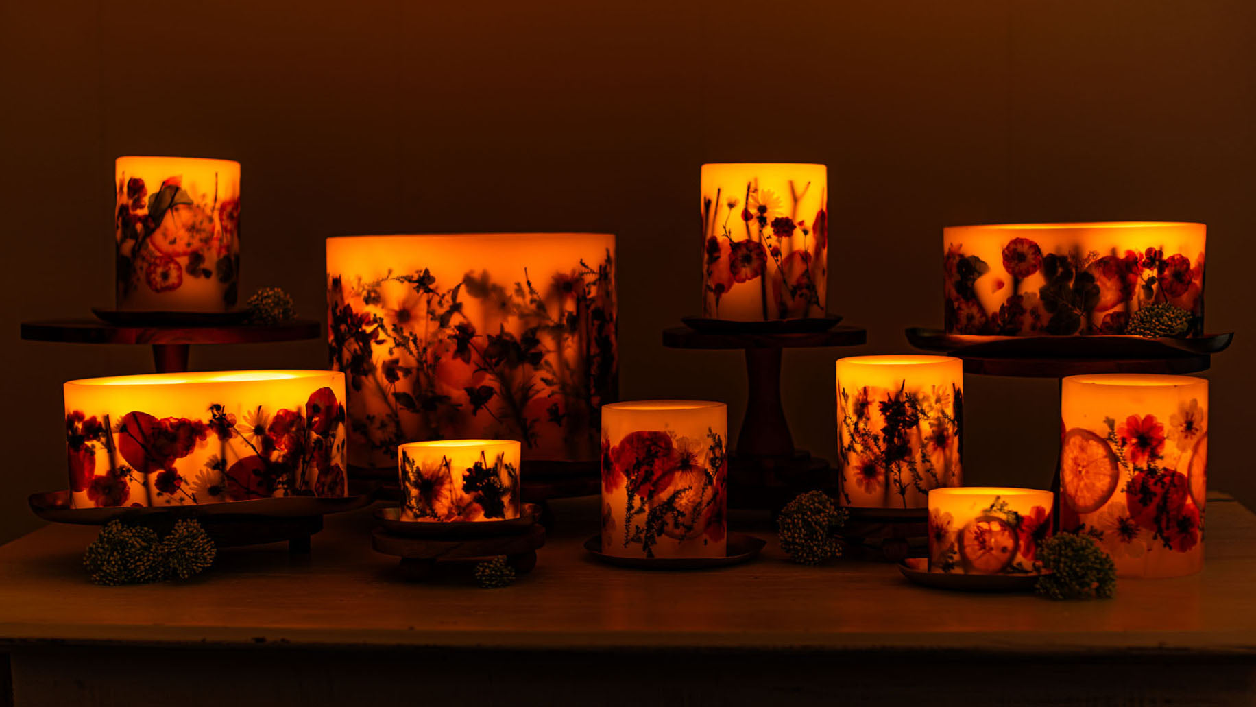 With every botanical element placed carefully by the hands of our candle artisans, these beautifully fragrant candles can take up to 3 days to perfect. During this process each candle is carefully touched 10 different times, from pouring our exclusive wax blend by hand, to lovingly shaping each piece by hand and knife. This artisanal process ensures that the candle appeals to multiple senses by filling your space with fragrance and illuminating botanical elements.