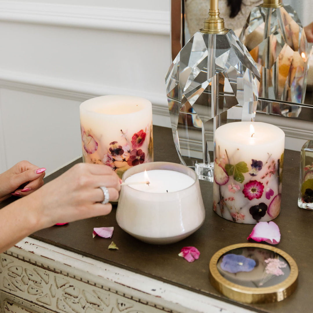 Explore the harmonious fusion of Rosy Rings' extraordinary fragrance expertise with Patricia Nash's timeless Italian-inspired designs and our renowned botanical craftsmanship with Rachel Parcell's elegant aesthetic.